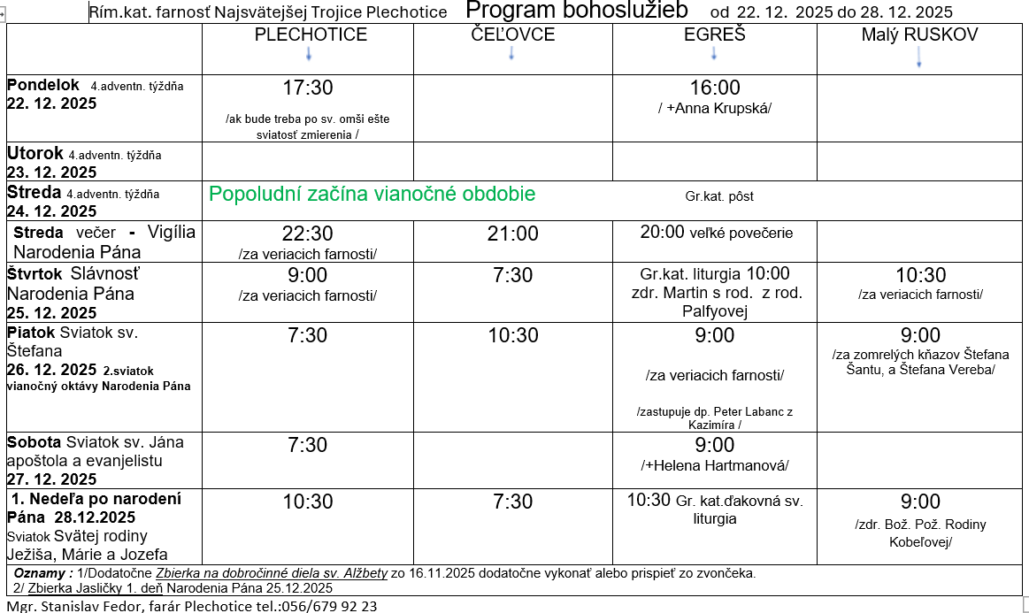 Bohoslužobný poriadok 15.12.2025-21.12.2025